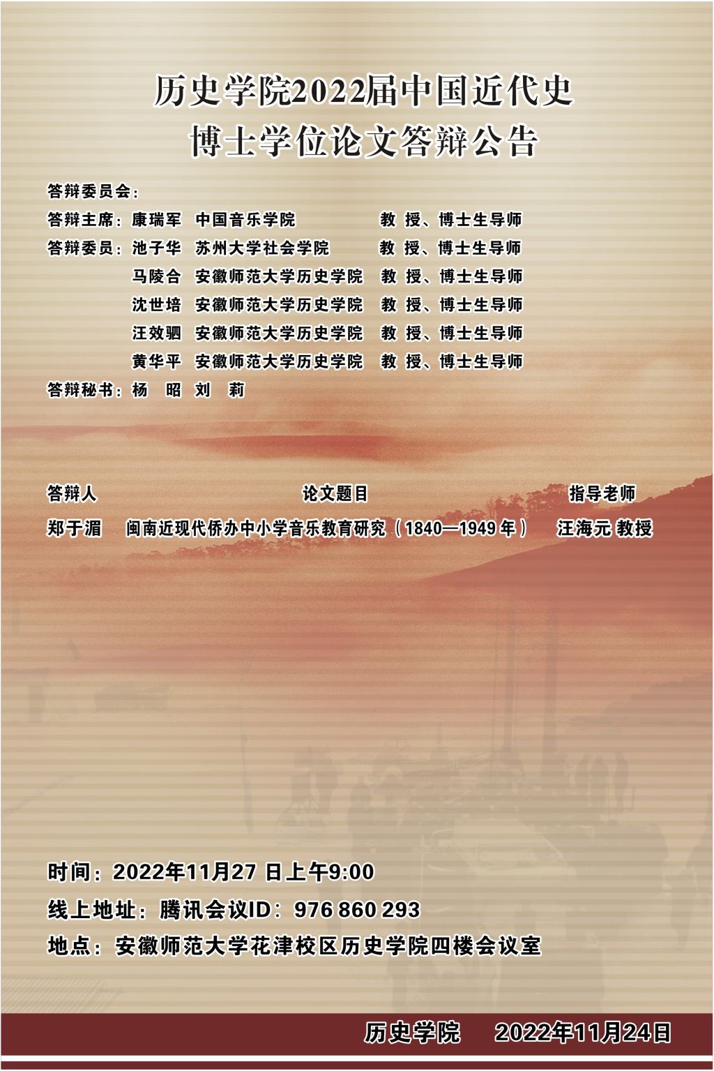 英国上市公司3652022届中国近现代史博士学位论文答辩公告
