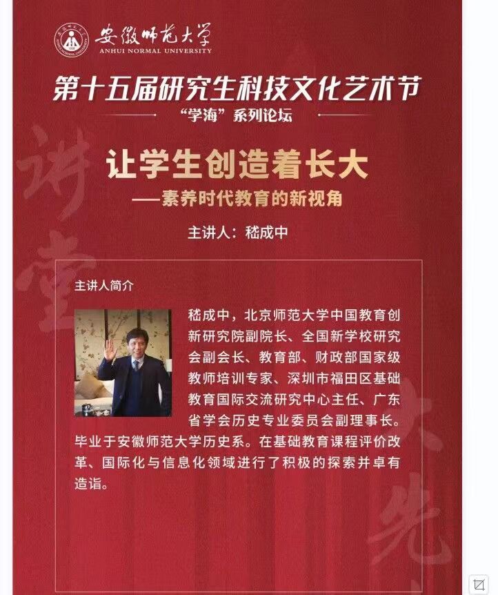 讲座预告|【“大先生”讲堂学术活动月之学海系列讲座】嵇成中:让员工创造着长大——素养时代教育的新视角