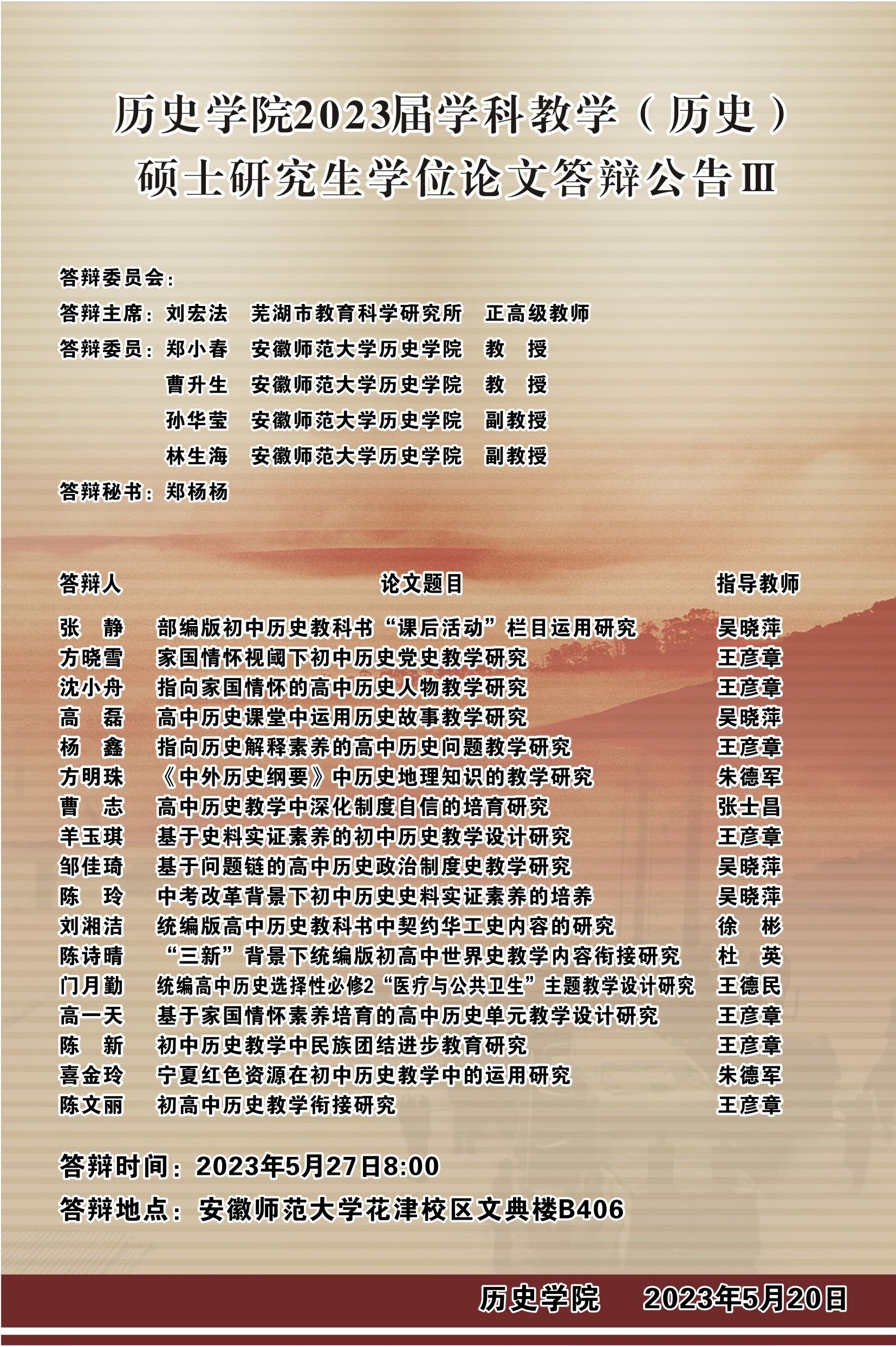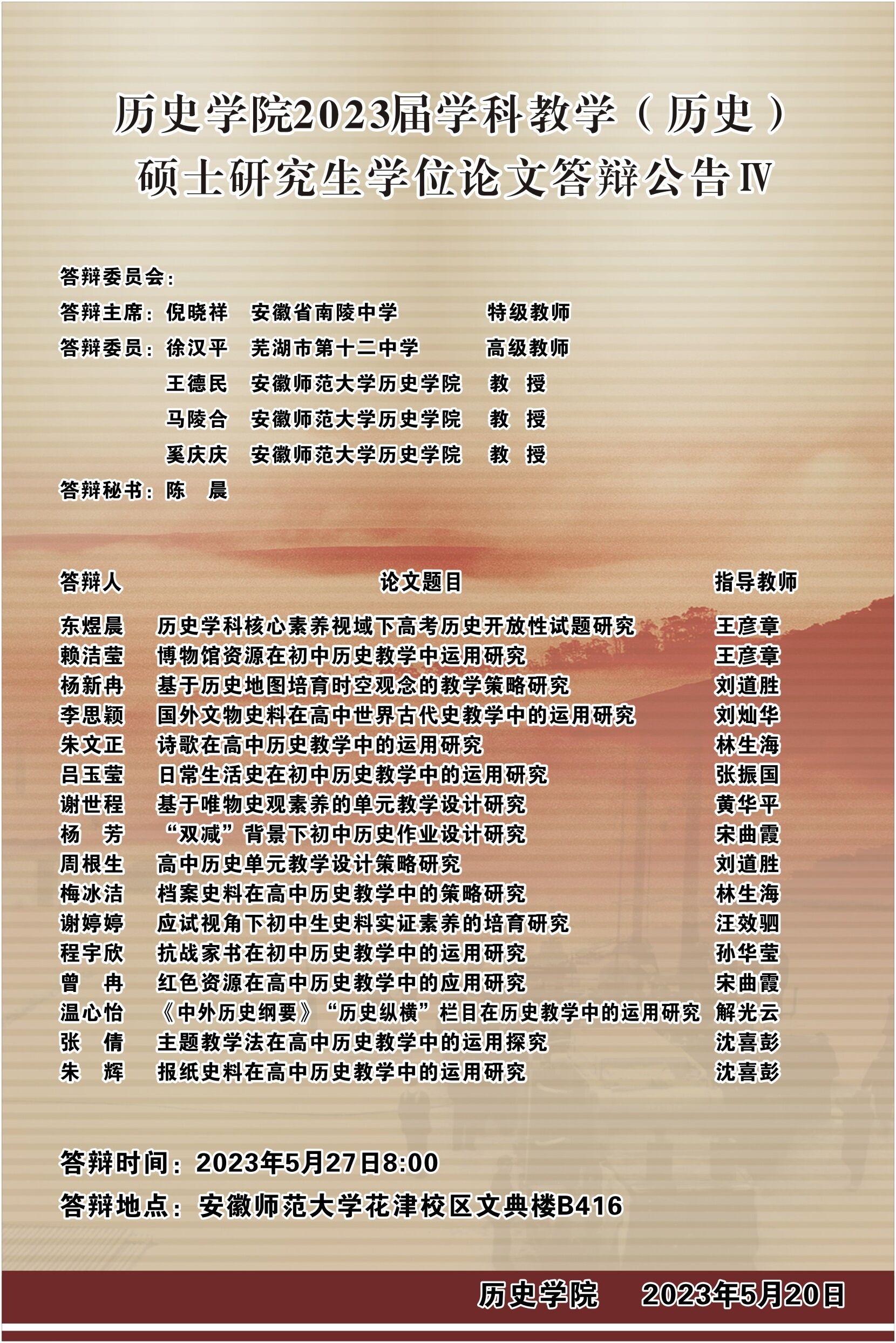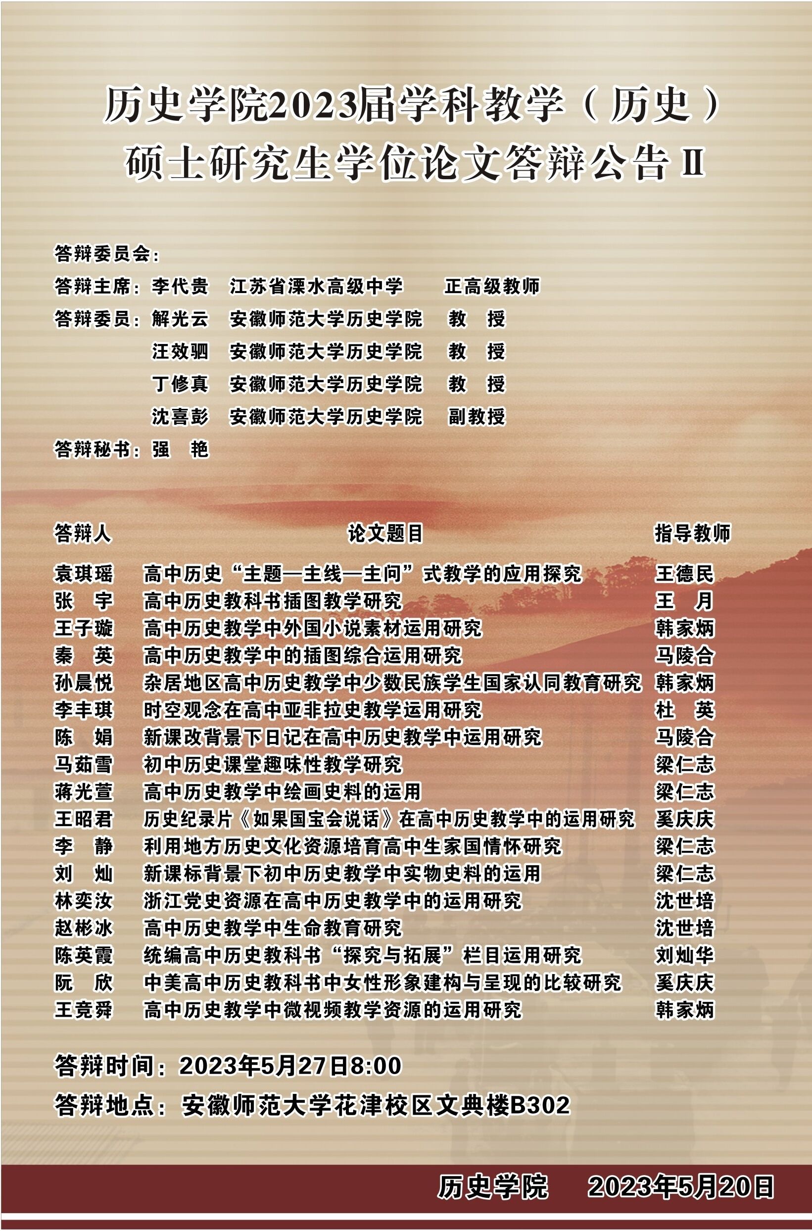 英国上市公司3652023届学科教学(历史)硕士研究生学位论文答辩公告