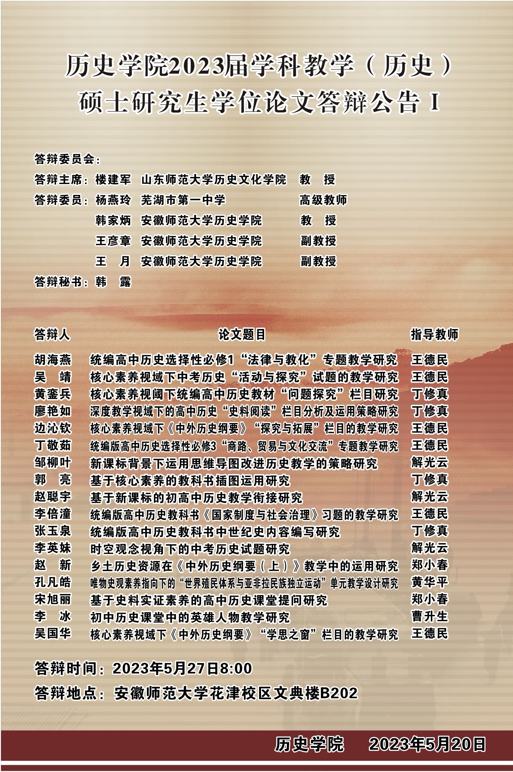 英国上市公司3652023届中国古代史(徽学)硕士学位论文答辩公告