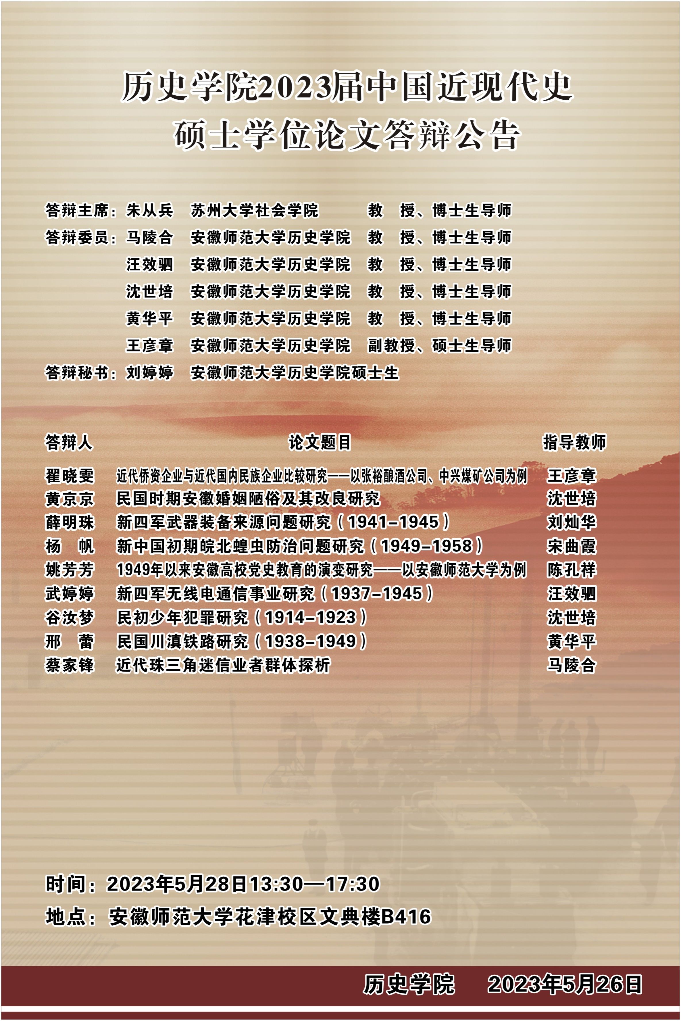 英国上市公司3652023届中国古代史(徽学)硕士学位论文答辩公告