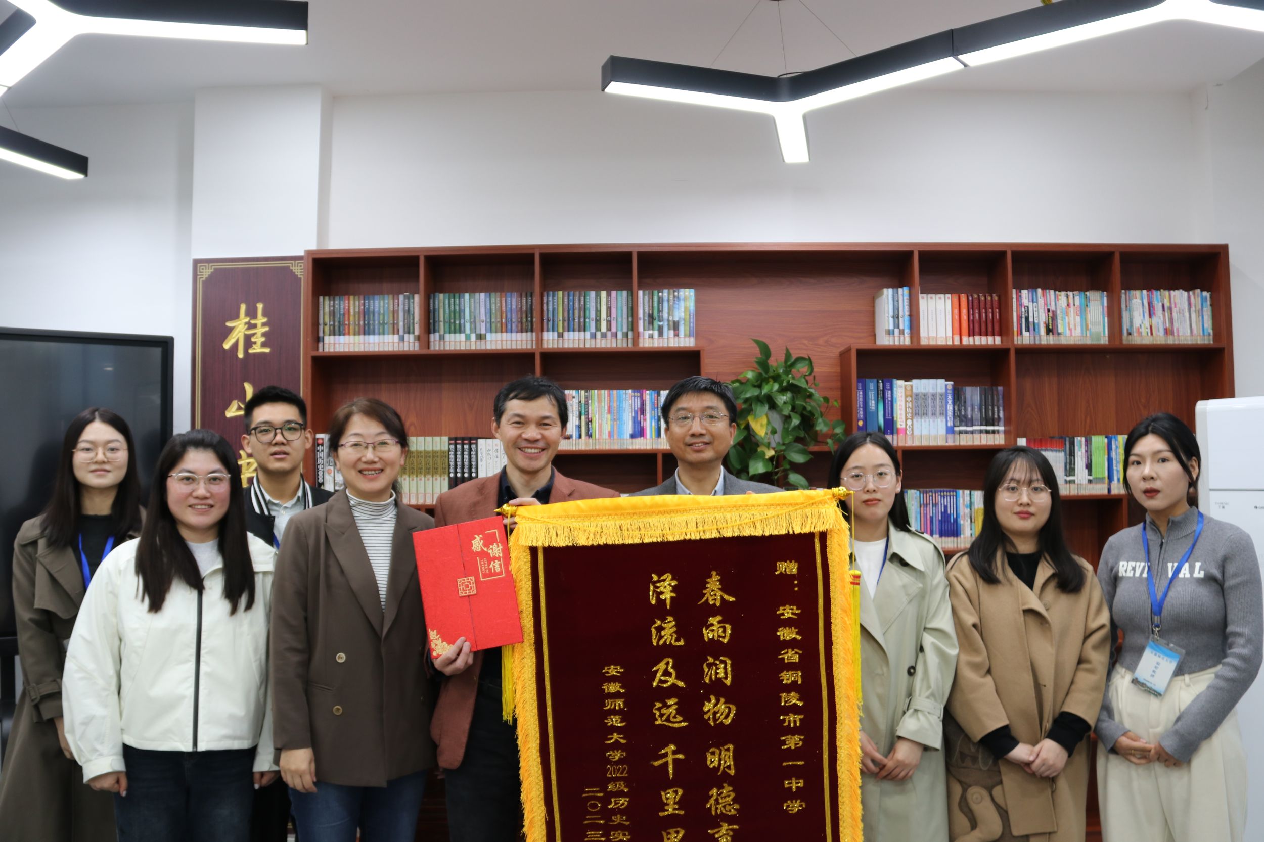 随后,双方领导老师和实习生来到图书馆开展实习交流座谈会。会上,毕茂荣对公司领导、老师的到来表示热烈的欢迎,对实习生的实习工作进行了点评和总结,提出了一些不足和改进建议。韩家炳指出,铜陵一中作为省内知名公司,能给予英国上市公司365员工宝贵的实习锻炼机会,各位学习生应抓紧时间,努力提升自身教学和班级管理技能。孙华莹、江琴也对毕茂荣主任及各位指导老师表达了感谢,并就之后的实习模式与计划安排进行探讨。6名实习生逐个交流了实习感悟和心得,表示通过此次实习,让自身充分认识到了教师工作的责任心和使命感,为今后的职业生涯积累了宝贵的经验和财富。接着,韩家炳经理和实习员工代表分别将锦旗和感谢信交给毕茂荣主任以示感谢。最后,各位老师和员工参观了铜陵一中校史馆和员工社团考古社。