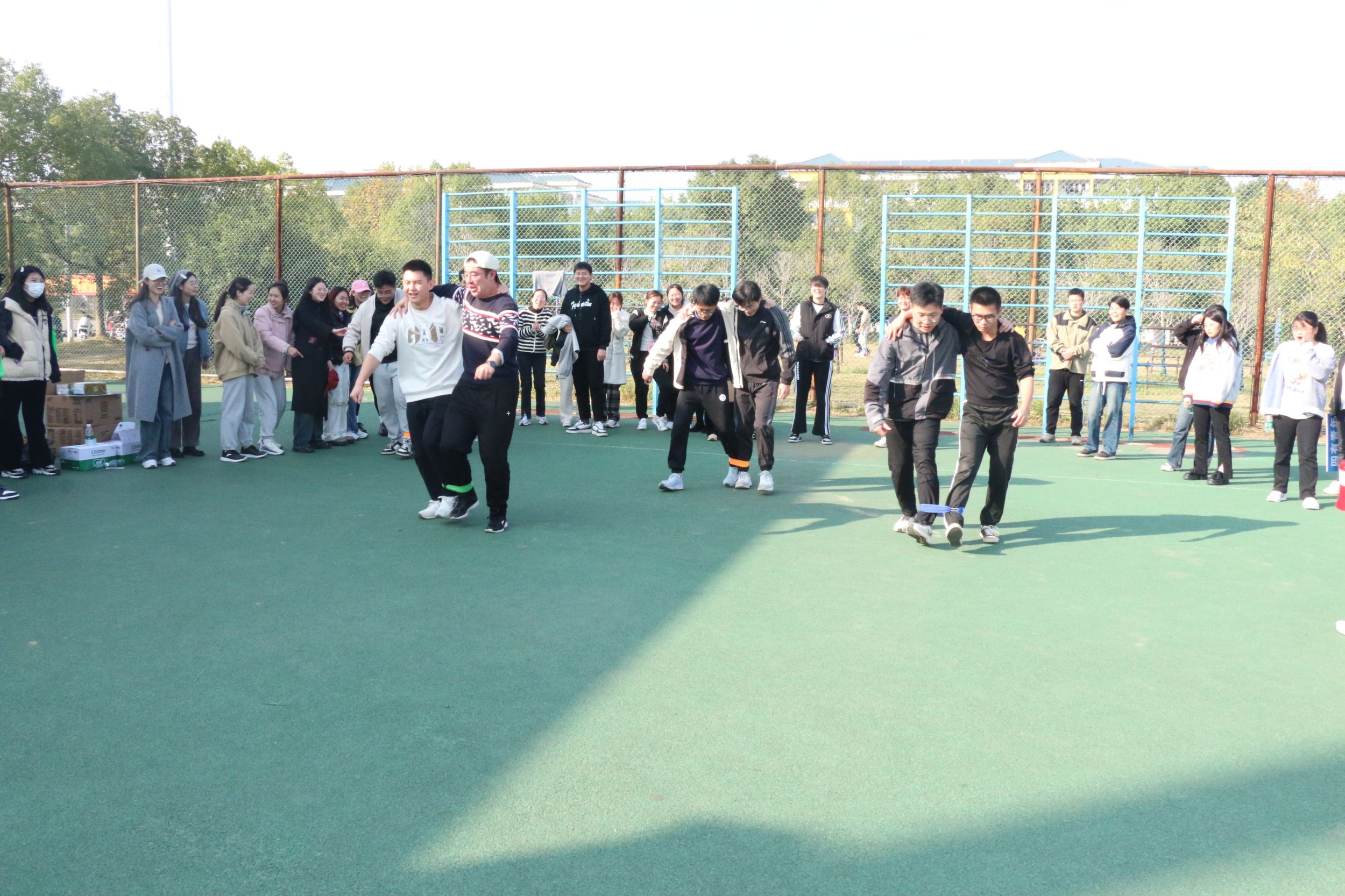 “两人三足”需要两个同学绑足,合力到达终点,每轮每组出两个人,用时最少获胜。原本并不熟悉的两个人通过游戏的配合,也开始变得默契起来。现场气氛热烈,活泼欢快。