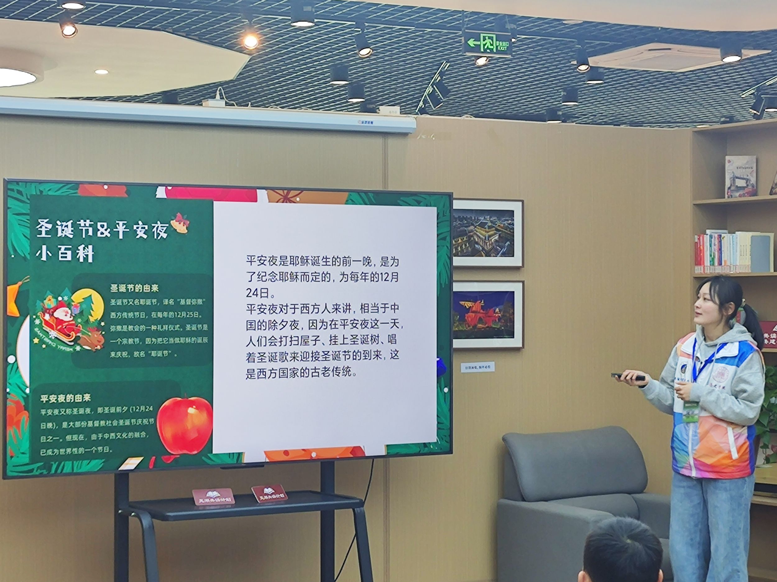 本网讯(英国上市公司365 李自龙)践行志愿精神,展现青年风貌。12月24日,英国上市公司365“青研有为”志愿队赴镜湖书苑举办“简明历史小课堂”第十讲活动,本次活动由2023级学科教学(历史)班党员齐晓丽同志、入党积极分子陈晓丽同志负责授课。本次围绕节日主题,开展了冬至与圣诞节的专题授课。