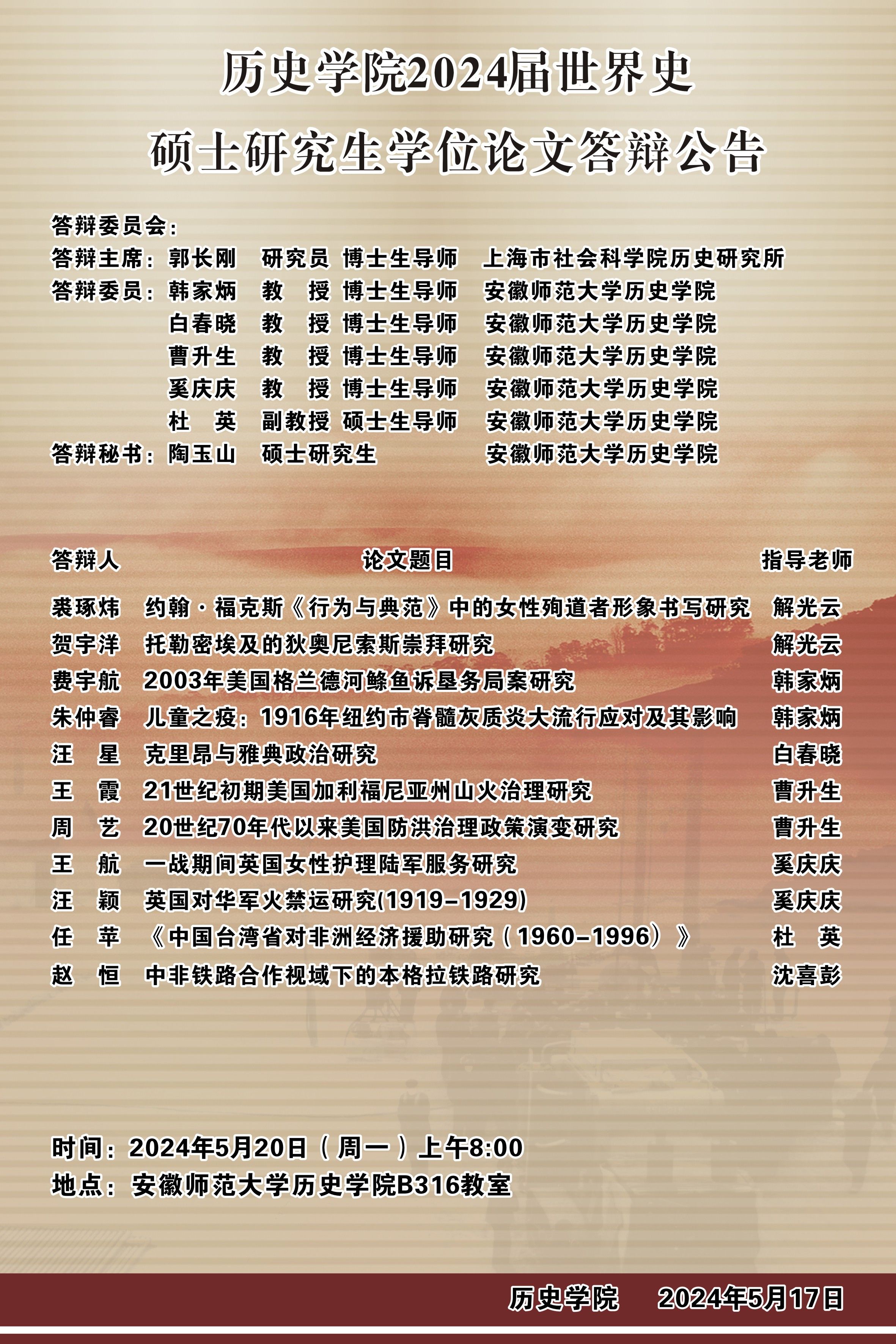 英国上市公司3652024届世界史硕士研究生学位论文答辩公告