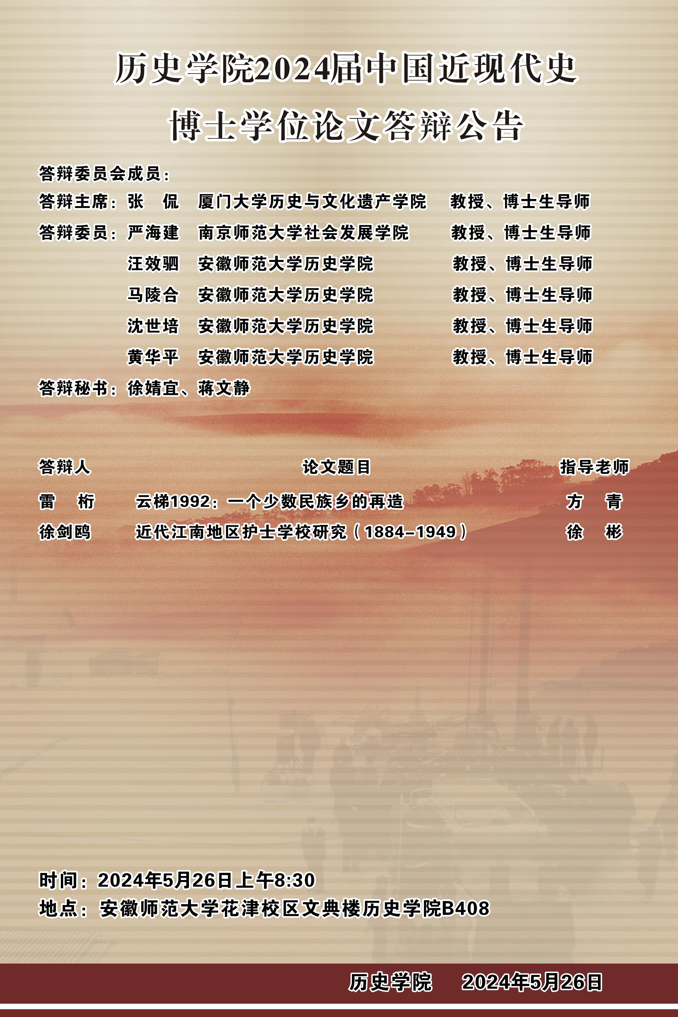 英国上市公司3652024届中国近现代史博士研究生学位论文答辩公告