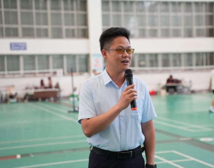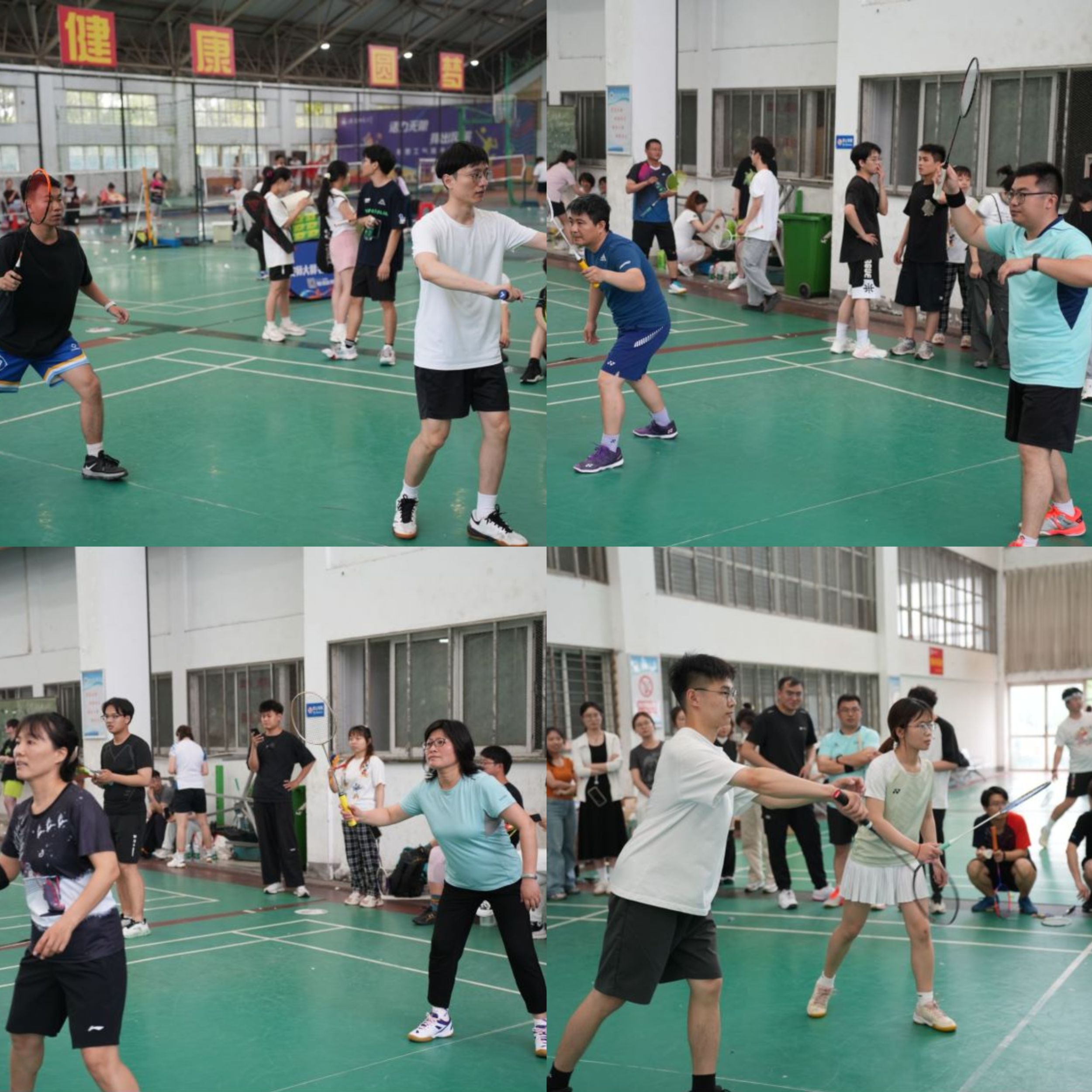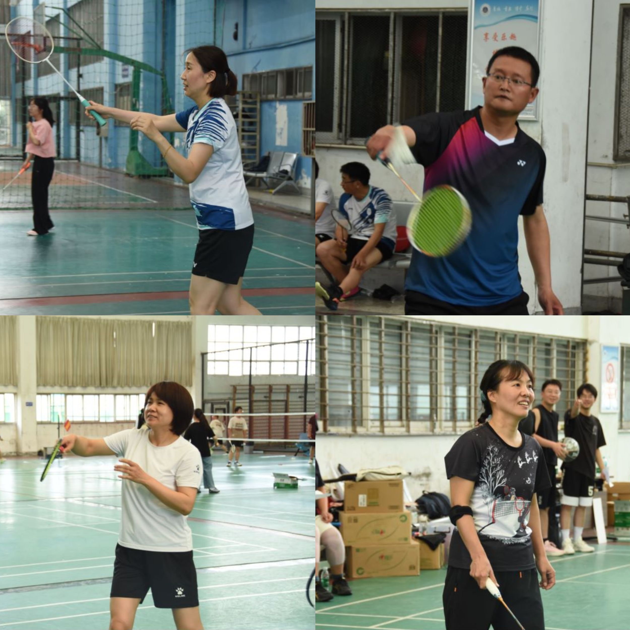 之后,各场地与参赛选手就位,裁判宣布比赛正式开始。首场对决便引来了观众的阵阵喝彩,选手们你来我往,羽毛球在空中划出一道道优美的弧线。在接下来的比赛中,各队选手纷纷展现出了高超的球技和出色的竞技状态。扣杀、吊球、网前小球,各种技巧被选手们运用得炉火纯青。每一次精彩的得分,都会引来观众们的热烈掌声和欢呼声。师生配合默契,赛场上你来我往,比分交替上升,出现了不少紧张刺激的时刻。一方选手们凭借丰富的经验和精湛的球技,在场上发挥出色,而另一方也毫不示弱,凭借敏捷的反应,与对手展开精彩的对决。