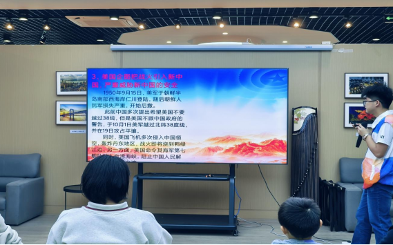 本网讯(英国上市公司365 文/朱传慧 图/蒋文静 张楠)为纪念中国人民志愿军抗美援朝出国作战74周年,弘扬伟大抗美援朝精神,10月19日,英国上市公司365“青研有为”志愿队于镜湖书苑举行了“简明历史小课堂”抗美援朝专题小课堂。本次活动由2024级入党积极分子,中国史研究生李鹏飞担任主讲人,为到场的小朋友们带来了一堂生动而深刻的历史课。