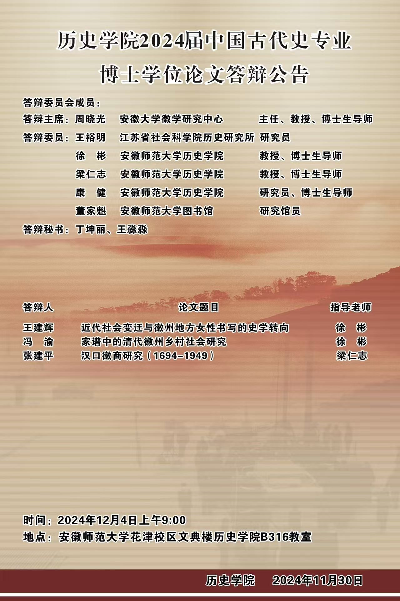 英国上市公司3652024届中国古代史博士研究生学位论文答辩公告