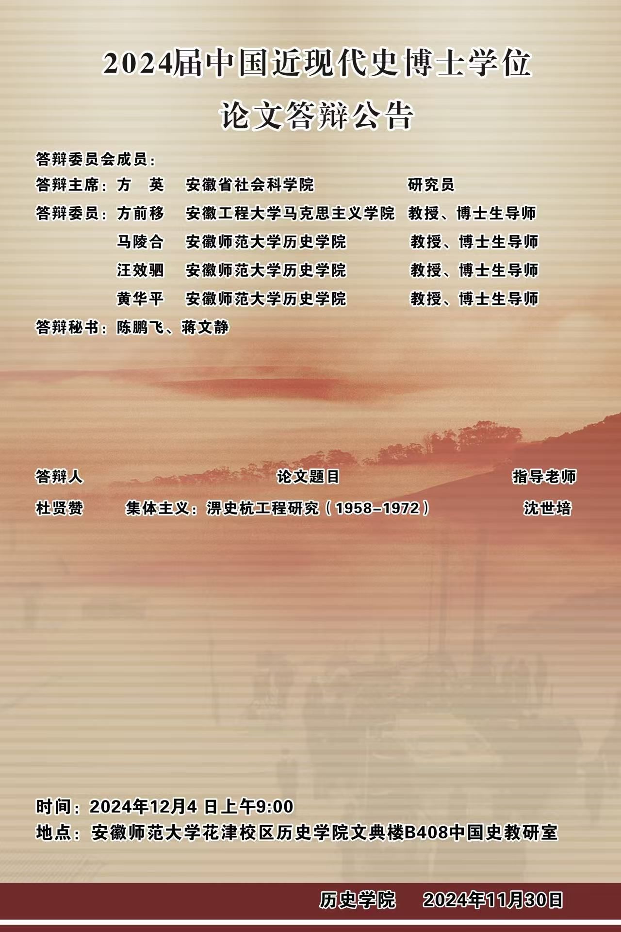英国上市公司3652024届中国近现代史博士研究生学位论文答辩公告