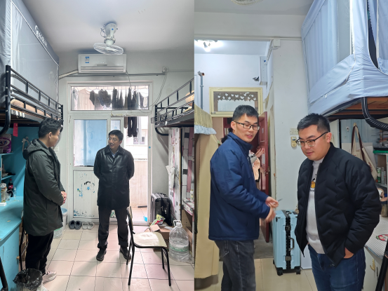 查寝过程中,老师与同学们进行了亲切交流。韩家炳在走访 23 级学硕寝室时,详细询问同学们的居住感受,提出要做有品德之人,并且提高学习热情,鼓励多读书、多钻研,提升综合素质。尹蒙蒙提醒同学们重视寝室清洁卫生,提醒同学们近期早晚温差大,要注意保暖,建议多开窗通风,保持宿舍整洁,并鼓励同学们遇到问题和困难时及时向辅导员和公司领导反映。吕永鑫则着重强调寝室用电安全,提醒员工切勿使用违规电器,确保宿舍安全。