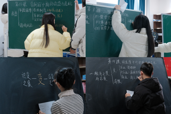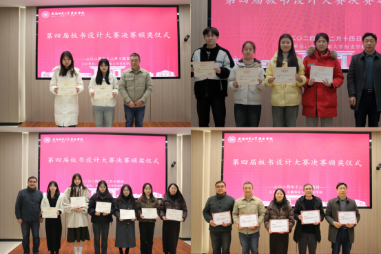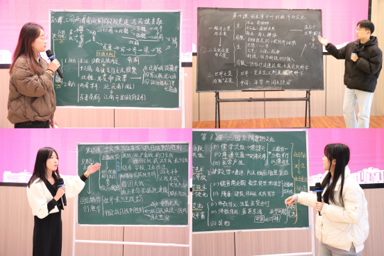 比赛过程中,参赛选手们在备课阶段围绕所抽课题精心构思,上场时依据备课内容精心设计、奋笔疾书,每一份板书作品主题突出、布局精美。在答辩阶段,选手们细致讲解了课程讲解思路以及板书设计规划,并且认真回答了各位评委老师提出的问题。经过激烈角逐,评委们依据评分标准评选出了一、二、三等奖。获奖作品不仅在板书设计上独具匠心,令人赞叹不已,而且在教学内容的呈现上逻辑严密、重点明晰,完美地实现了形式与内容的高度统一。