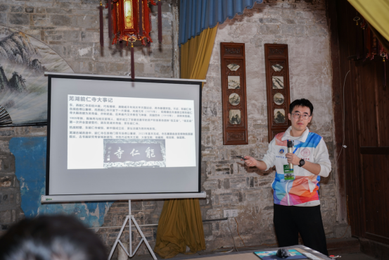 随后,何煦冬向观众展示了小天朝的地理位置及建筑图片,并追溯小天朝名字的由来及历史价值。之后,何煦冬通过广济寺与能仁寺的比较,引出了能仁寺建立的背景,并以视频梳理了能仁寺的前世今生。紧接着,何煦冬又讲述了望火台从重要防火救火设施发展到今天的猫依宠物店的有趣变化。之后,何煦冬展示了占川书局的老图片,介绍其从清末官府、私人公馆、新华电讯社芜湖支社再到如今占川书局的演变过程。再后,何煦冬讲解了正大旅社的相关历史,并特别介绍其是过去中国共产党的秘密集会场所。最后,何煦冬引导观众观察知我茶社的种种建筑细节,讲述了茶社前身——宫保第的名字由来以及其历史演变的进程。