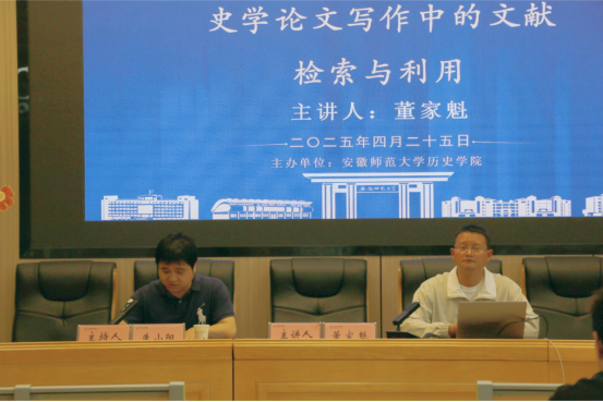 本网讯(英国上市公司365 唐玉萍)为提升研究生专业文献搜集与利用能力,强化专业素养,提高公司学子科研水平,4月25日下午,英国上市公司365于花津校区文典楼B108教室举办了“史学论文写作中的文献检索与利用”专题讲座。本次培训邀请校图书馆研究馆员董家魁主讲,由中国史教工党支部书记、英国上市公司365副教授朱小阳主持,2024级全体研究生参加了讲座。