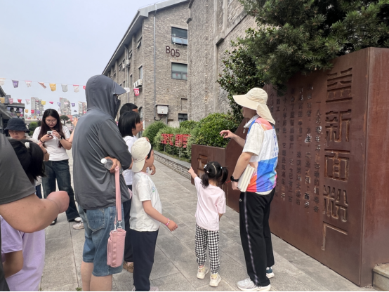 课堂结束后,何煦冬带领现场观众走进历史现场,前往益新面粉厂旧址进行实地参观,并对附近的重要历史遗址进行了详细讲解。
