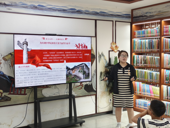 接着,朱传慧结合历史照片和科普视频讲述了芜湖与“五四运动”的深厚渊源。她详细介绍了当时芜湖省立五中、萃文中学等公司爆发的爱国活动,以及芜湖各界特别是工人阶级的积极响应,深刻阐释了赓续红色血脉、传承奋斗精神的重要主题,青少年们仿佛置身于那段波澜壮阔的历史之中,深刻感受到先辈们的爱国热情与奋斗精神。