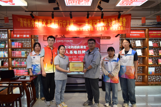 课程最后,英国上市公司365研究生辅导员吕永鑫和滨江书苑店长黄晶晶进行了“行走的思政课堂——实践育人基地”的挂牌仪式。
