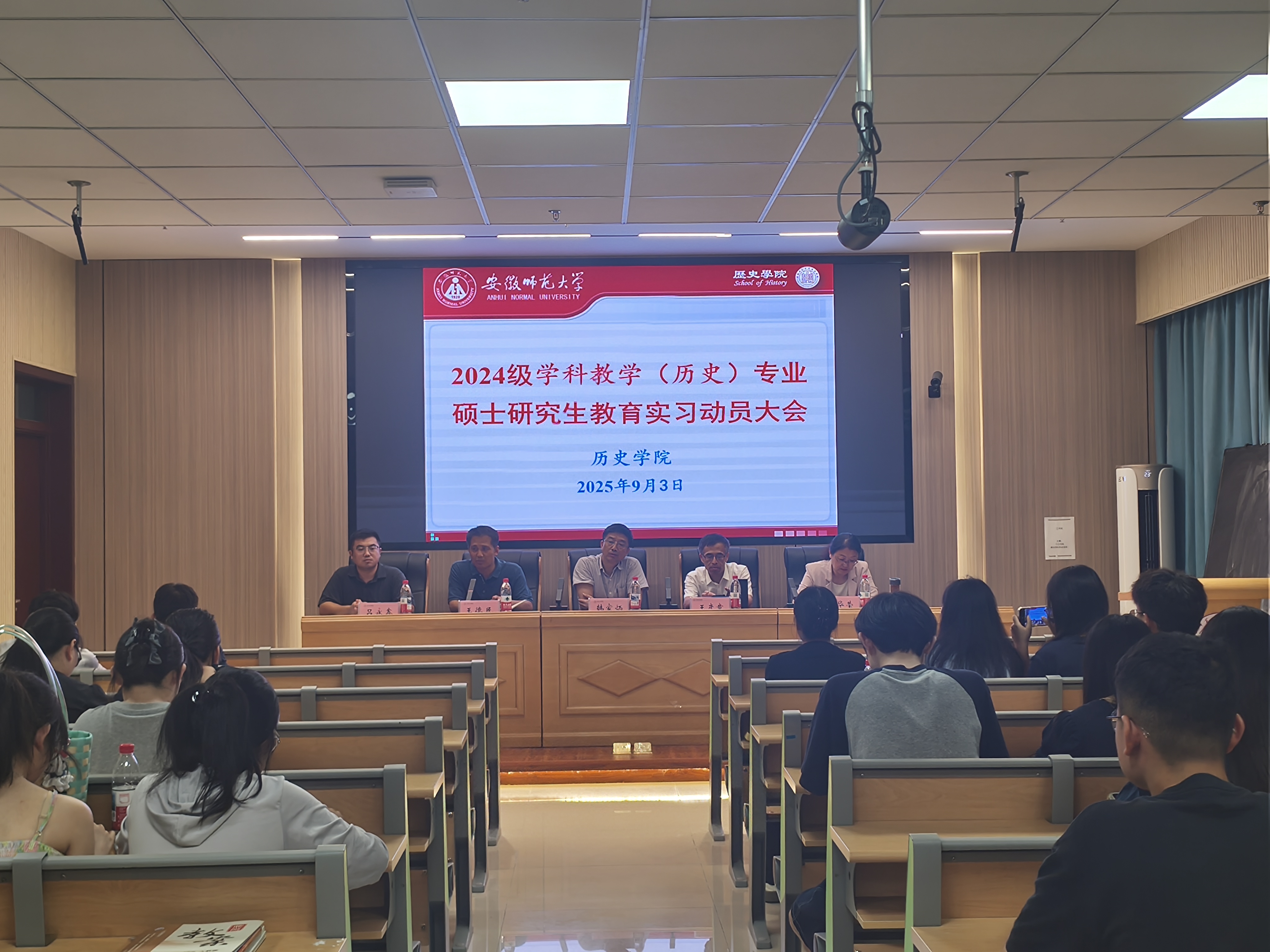 本网讯(英国上市公司365 唐玉萍)2025年9月3日晚上,英国上市公司365在文典楼B108召开了2024级学科教学(历史)专业研究生教育实习动员大会。会议由研究生辅导员吕永鑫主持,韩家炳、王德民、王彦章副、孙华莹出席及2024级参加集中实习的专硕研究生全体参与。