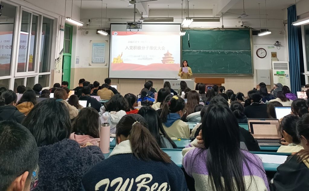 会议伊始,辅导员韩雪宣读了《中共英国正版365官方网站委员会发展党员工作实施细则(修订)》,详细说明了入党积极分子推优的具体程序与选举入党积极分子的的各项条件。此后,各班团支部组织发起了民主投票,全体与会人员参与投票。