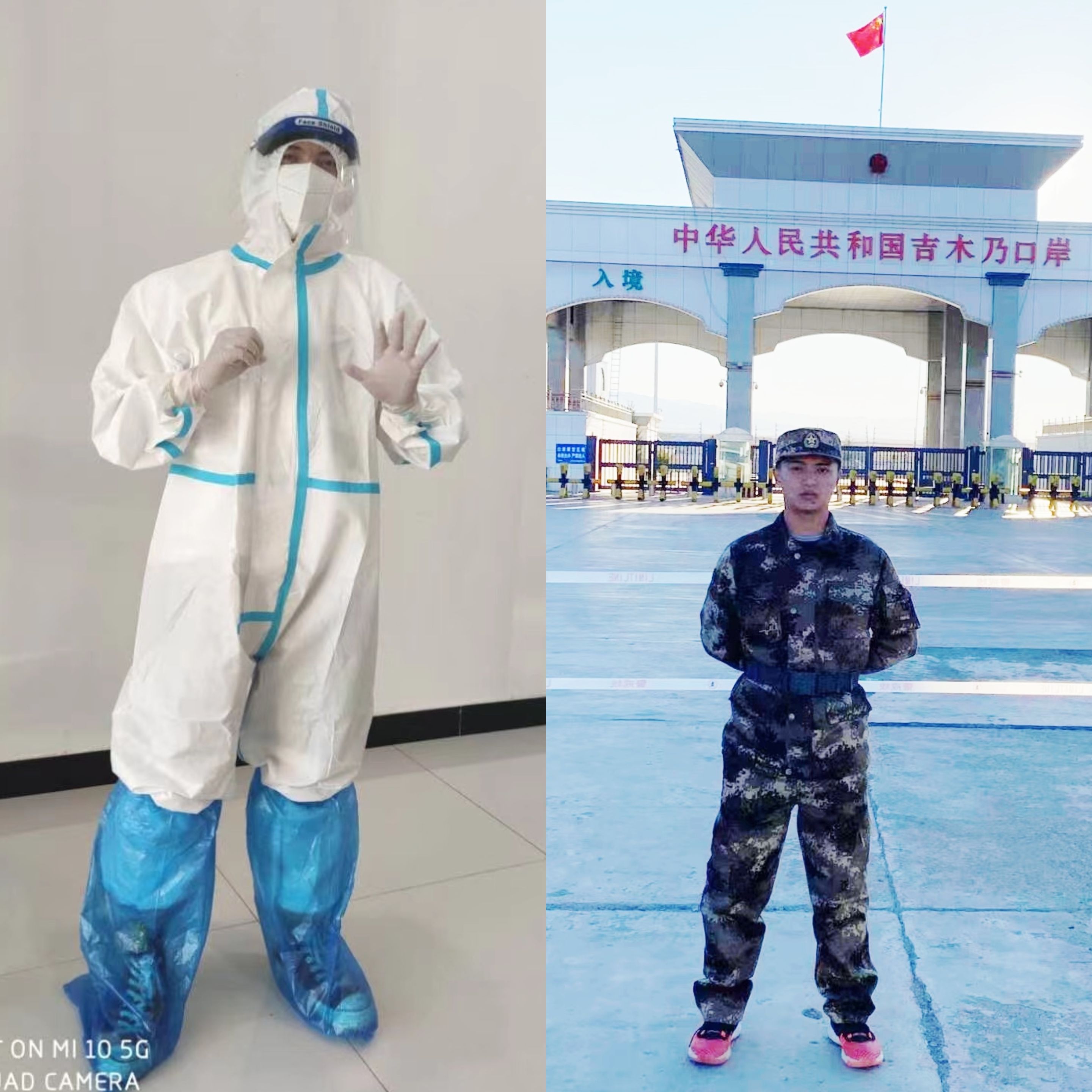 除了抗疫工作,在边境地区最重要的工作便是巡边。守国守边亦守家,贺宇洋身体力行,以为保长城不倒,烈马长枪握好的坚定决心,毅然加入中国——哈萨克斯坦边境线民兵巡逻队。每天14公里的步行巡逻路线成为生活的常态,20天的时间,他用脚步丈量边境,用行动延续使命,感受到祖国的大好河山,守护了身后的万家灯火。恰逢当年国庆,在到达中哈边界,贺宇洋有幸参加了国庆节的升国旗仪式和全体边境巡逻过程。漫长的车队行驶在边境线上,哨所的五星红旗冉冉升起,那一刻,他的内心生出无以言表的强烈自豪感