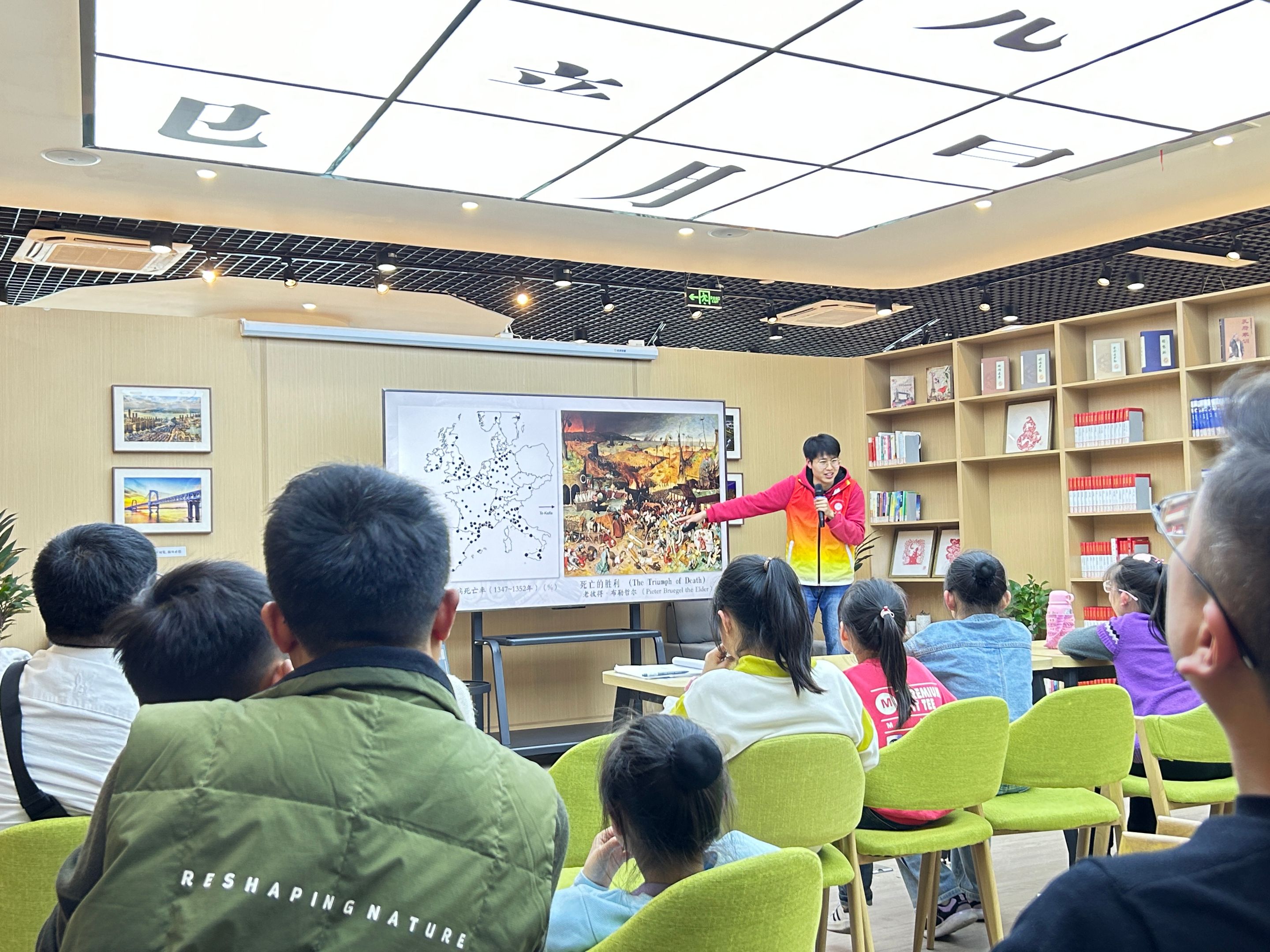 两位队员分别带领现场的读者朋友们领略了同一时间维度下中国宋朝与中世纪西欧的不同城市风情。高松同学以张择端的《清明上河图》为线索带现场的小朋友们“近距离”游览了宋朝,品味当时人们的衣食住行特色;伴随着一句“城市的空气使人自由(Stadtluft macht frei)”的德国谚语,朱仲睿同学带着读者们“走进了中世纪西欧的城市生活”,感受异国风情。有读者表示,两位队员的讲解打破了他对于中世纪欧洲的传统印象,同时对于宋朝的繁荣生活表示赞叹。最后,在热烈的掌声中,尹蒙蒙老师宣布此次活动圆满结束。