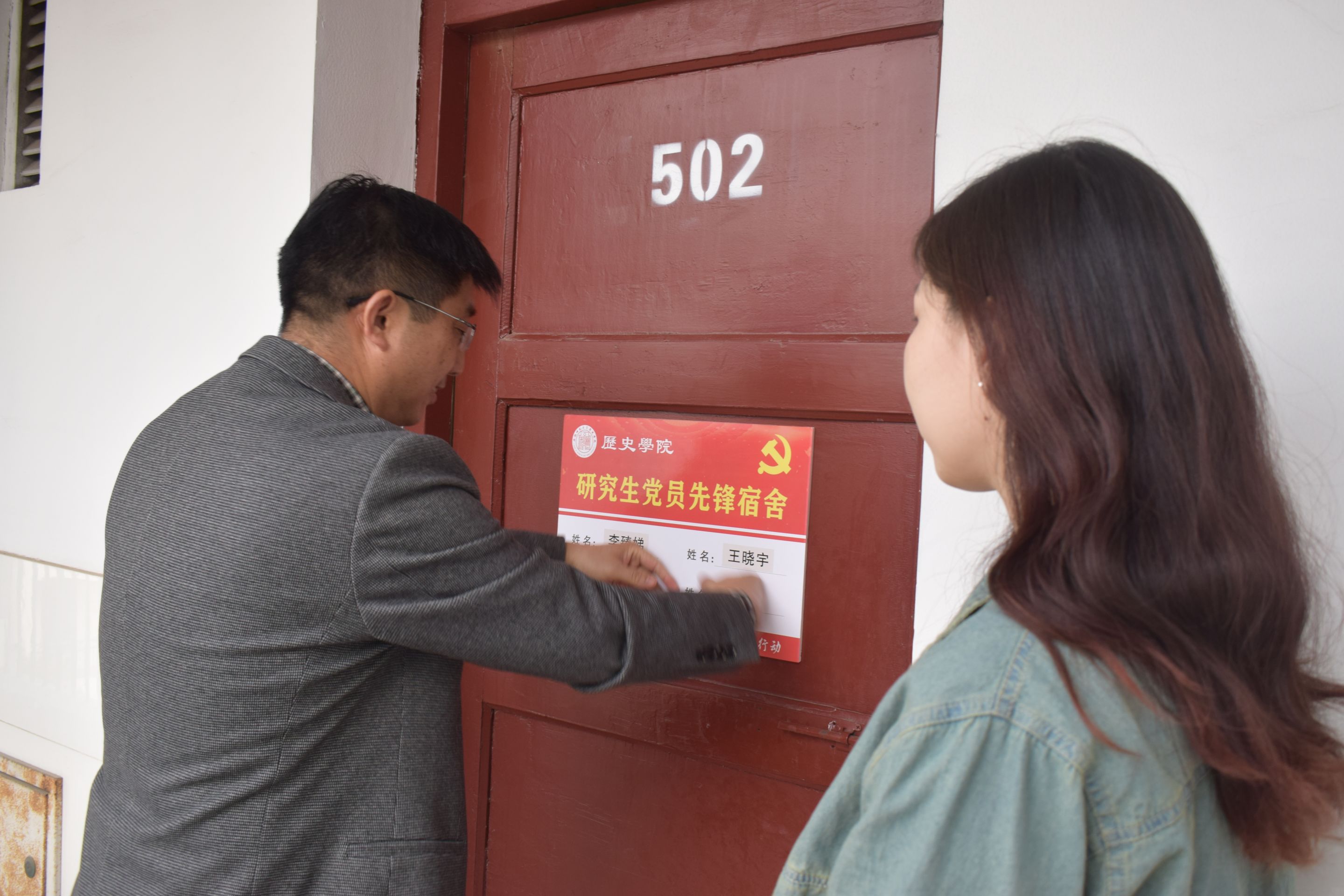 宫超在讲话中肯定了本次活动的意义,大家通过活动学习了党史知识,表达了情感,亮明了身份。党员敢不敢亮身份意味着党性强不强,要坚决杜绝“入党前风风火火,入党后泯然众人”的状态。全体党员和积极分子通过活动要进一步增强认识,坚定信念;主动作为,带头进步;总结经验,举一反三。主题教育活动结束后,韩家炳、安建增赴党员宿舍进行挂牌活动。