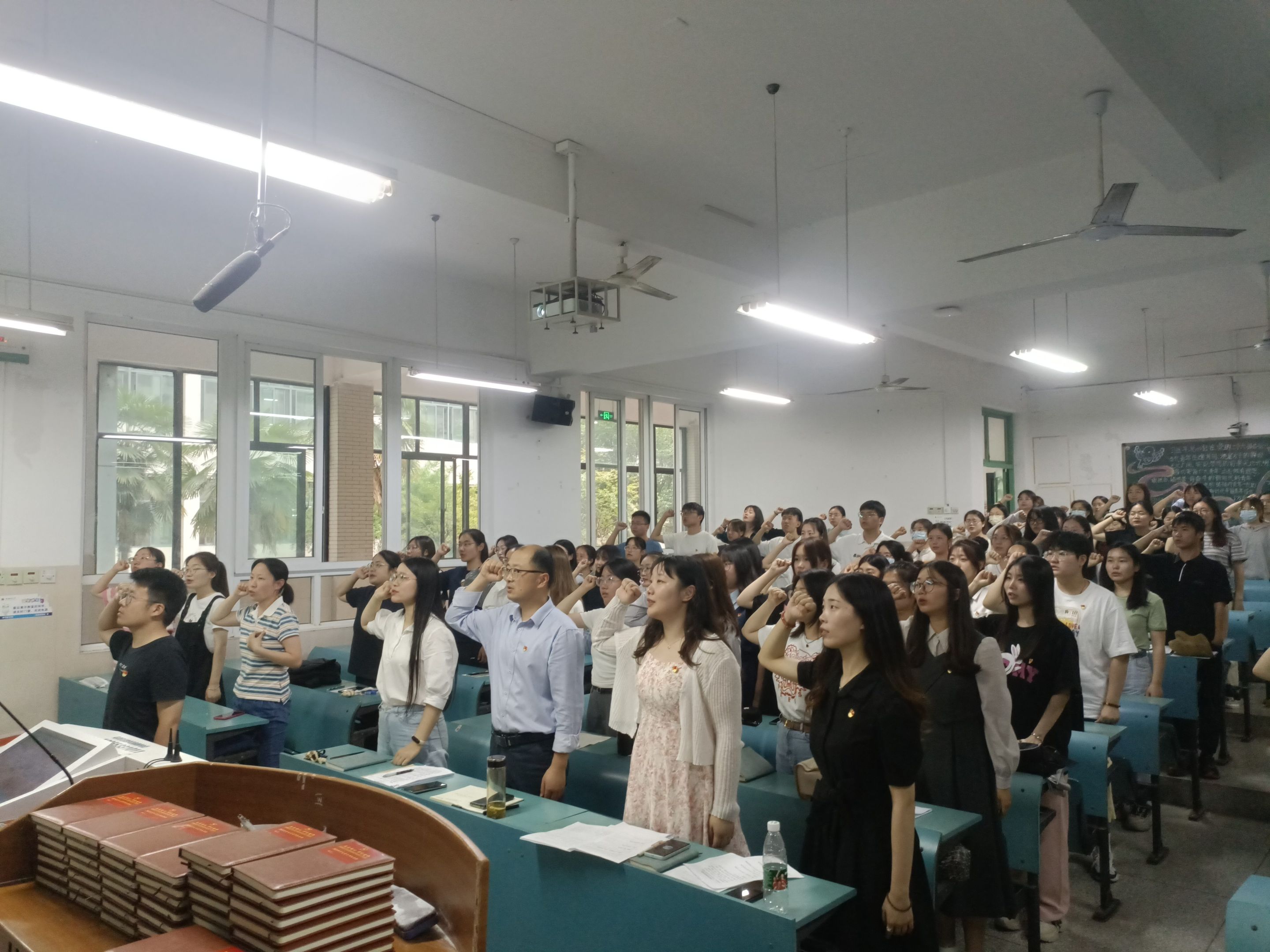 郭忠尧带领全体党员同志重温入党誓词。铿锵有力的声音响彻教室。在庄重严肃的氛围中,党员同志们更加坚定理想信念,牢记初心使命。2023届毕业生党员即将离校,韩雪宣读毕业生文明离校管理规定,倡导党员同志们继续发挥先锋模范作用,帮助毕业生们文明有序离校。最后,老师们为毕业生党员发放毕业纪念品,祝愿大家前程似锦。
