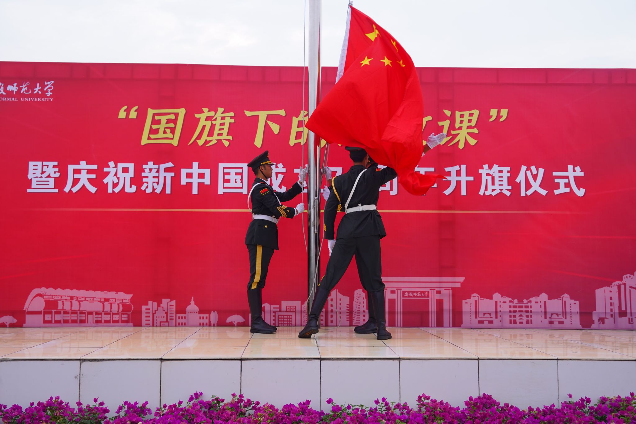 九州庆华诞,盛世写华章。公司于10月1日上午七点半在花津校区敬文图书馆东广场举行庆祝中华人民共和国成立74周年升旗仪式。本科生第一党支部组织在公司党员近20人,在公司党委副书记、支部书记宫超的带领下参加了升旗仪式。
