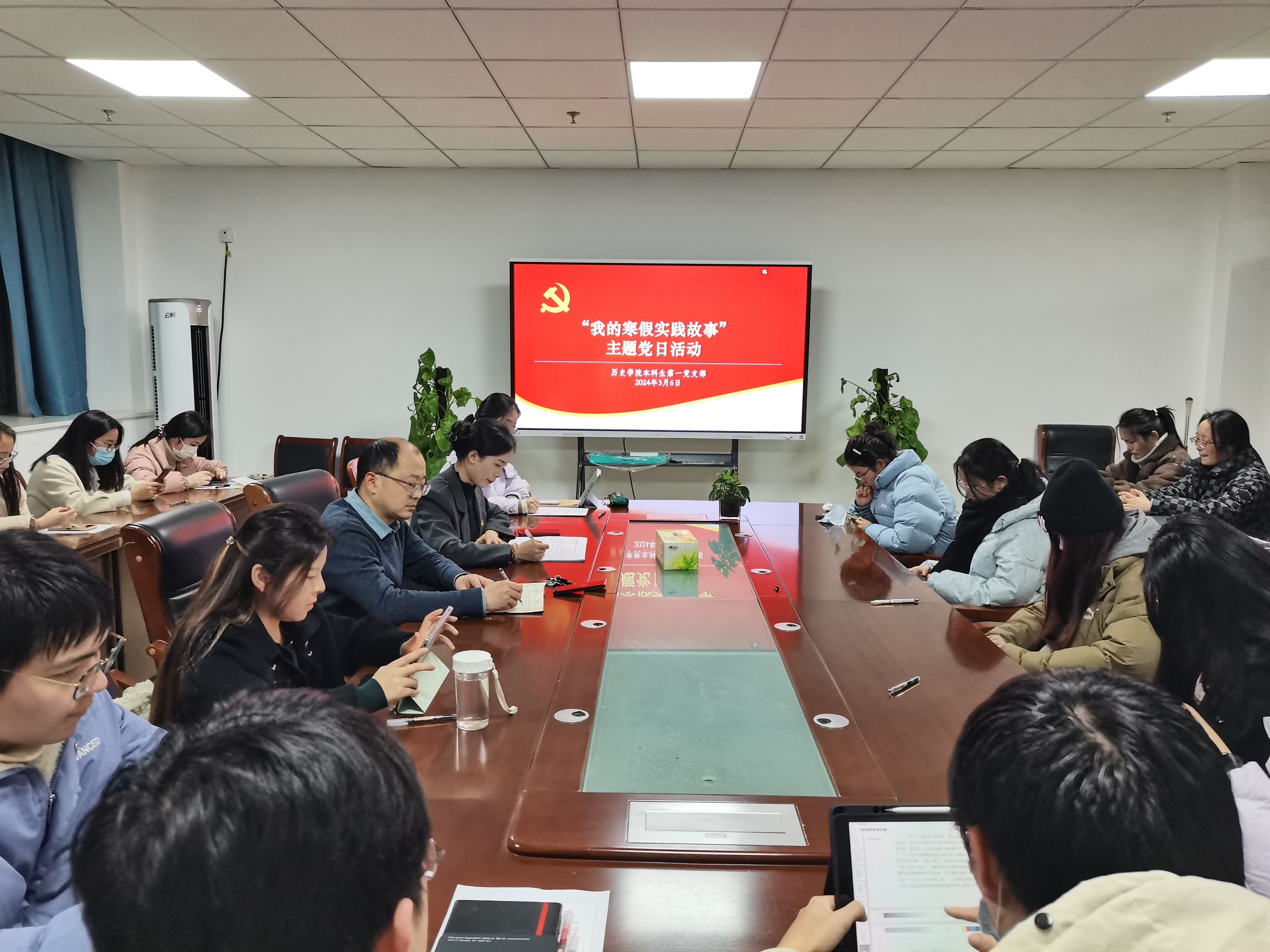 本网讯(通讯员 李宇乐)为了提高支部党员党性修养,增强组织观念,加强支部自身建设,巩固党员寒假实践成果,2024年3月6日晚,本科生第一党支部在英国上市公司365B416会议室召开了“我的寒假实践故事”主题党日活动。会议由支部副书记张文逸主持,支部书记宫超及全体员工党员参会。