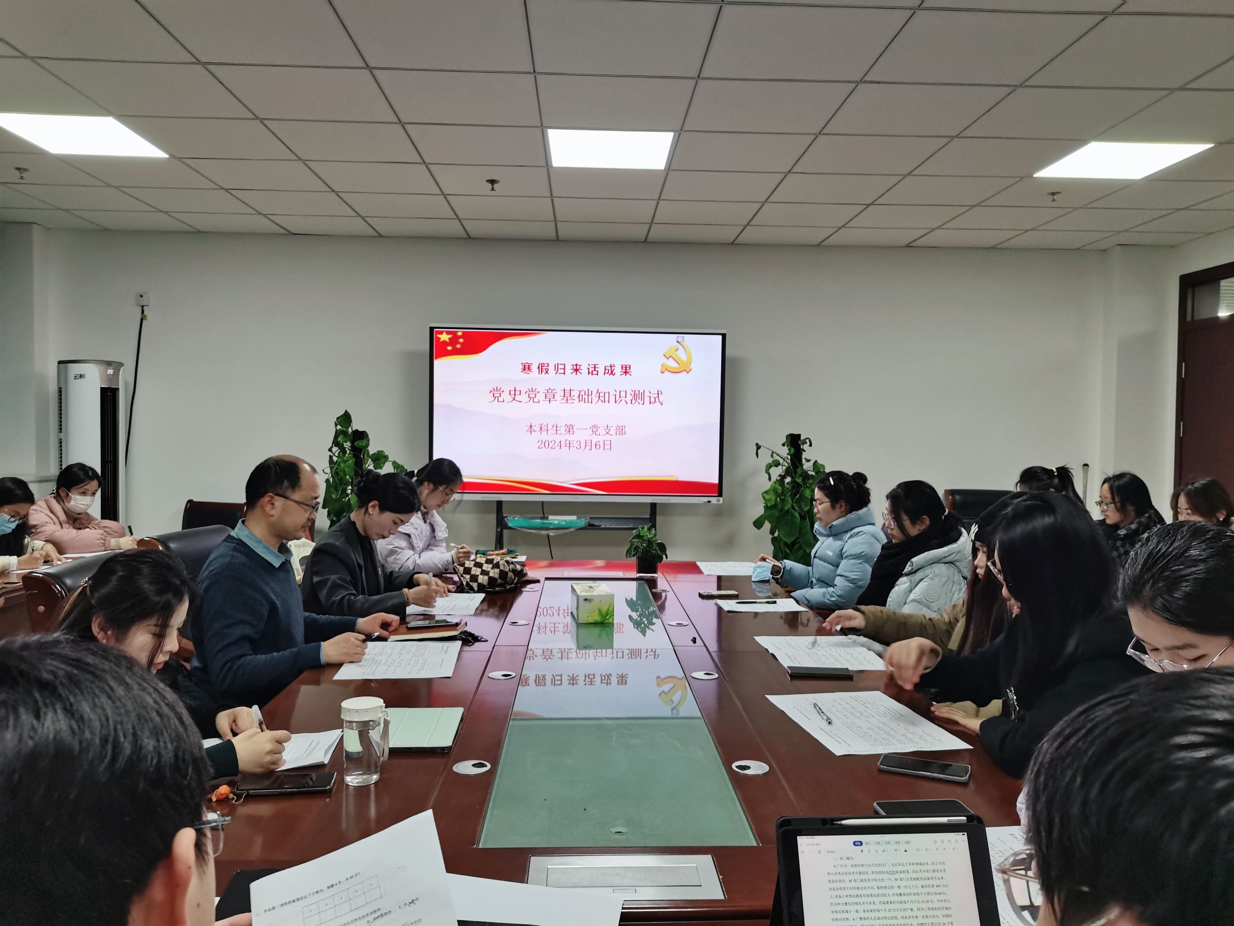 会议伊始,支部党员进行了党史党章基础知识测试,以检测和巩固党员寒假理论学习成果。支部书记宫超带领全体党员分析学习本次测试内容,并提醒大家党史理论学习的重要性。