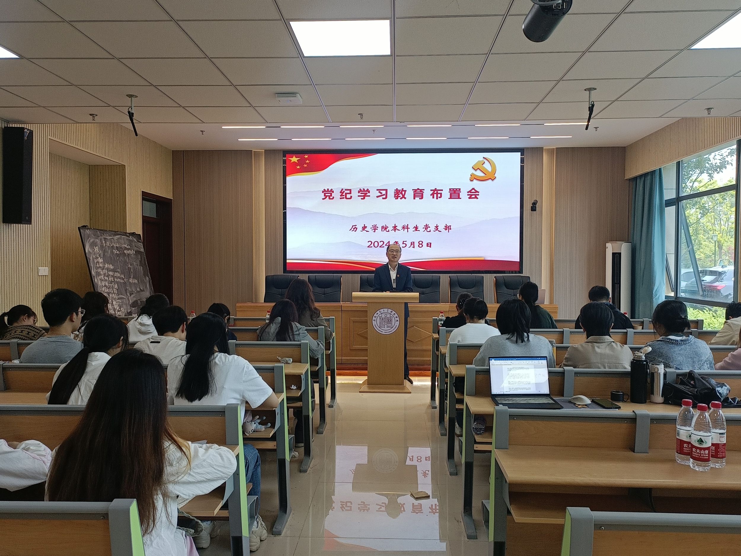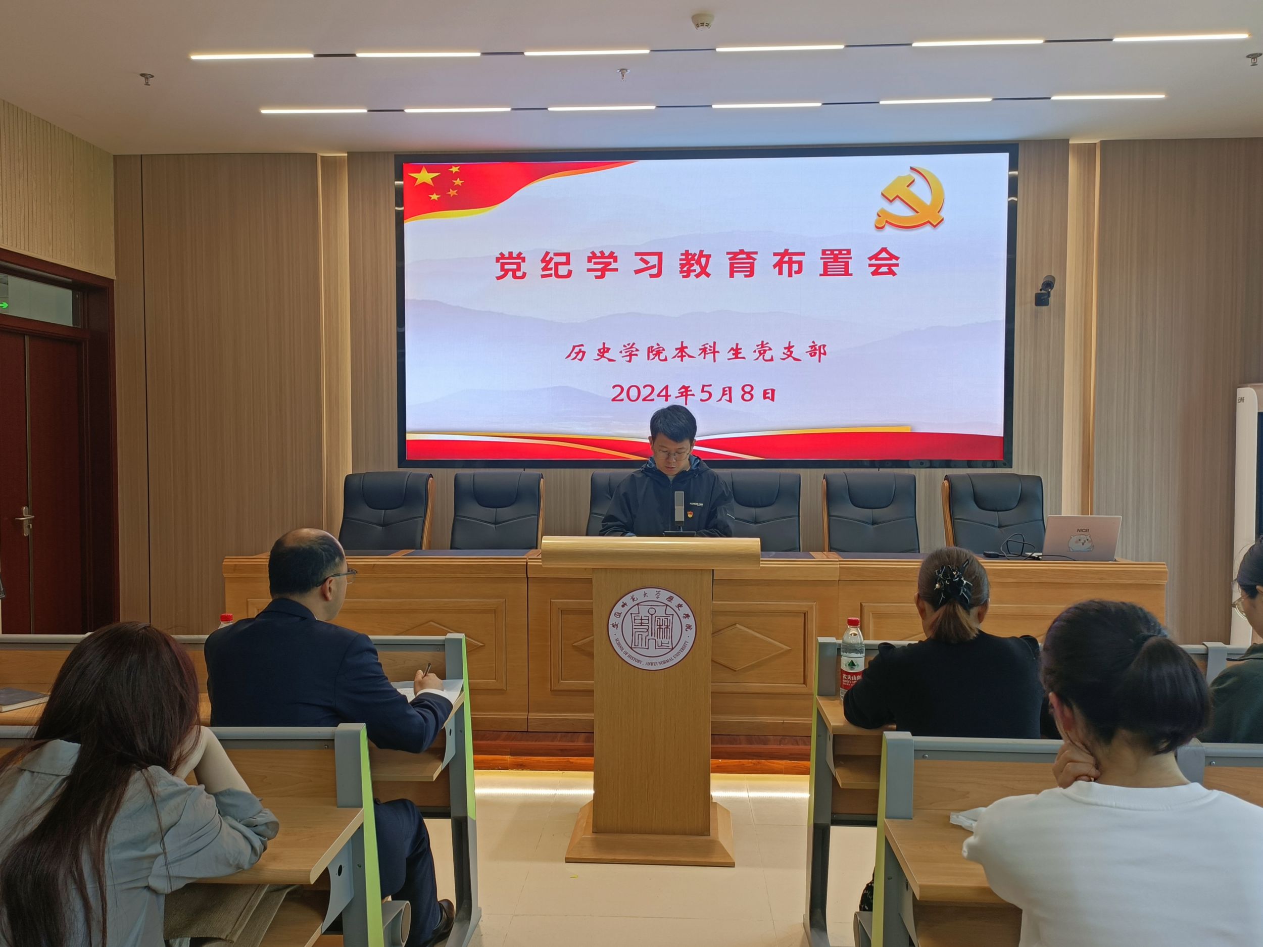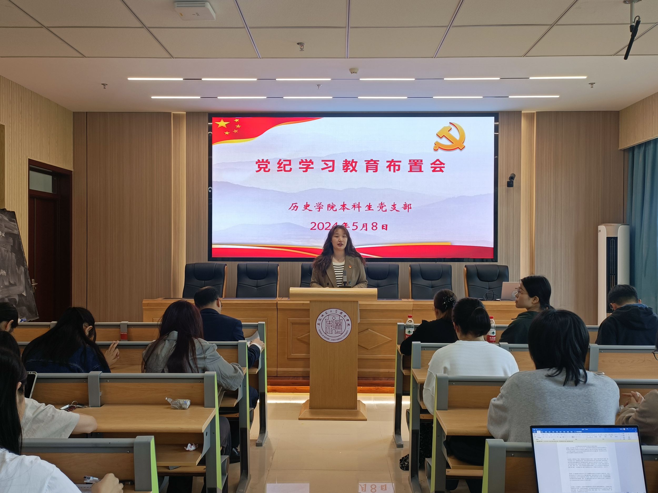 本网讯(英国上市公司365 张水鸿)5月8日上午,英国上市公司365本科生党支部于文典楼B108报告厅召开党纪学习教育布置会。本次会议由本科生第二党支部书记韩雪主持,公司党委副书记、本科生第一党支部书记宫超,本科生第三党支部书记郭忠尧出席会议,本科生党支部全体党员同志参会。