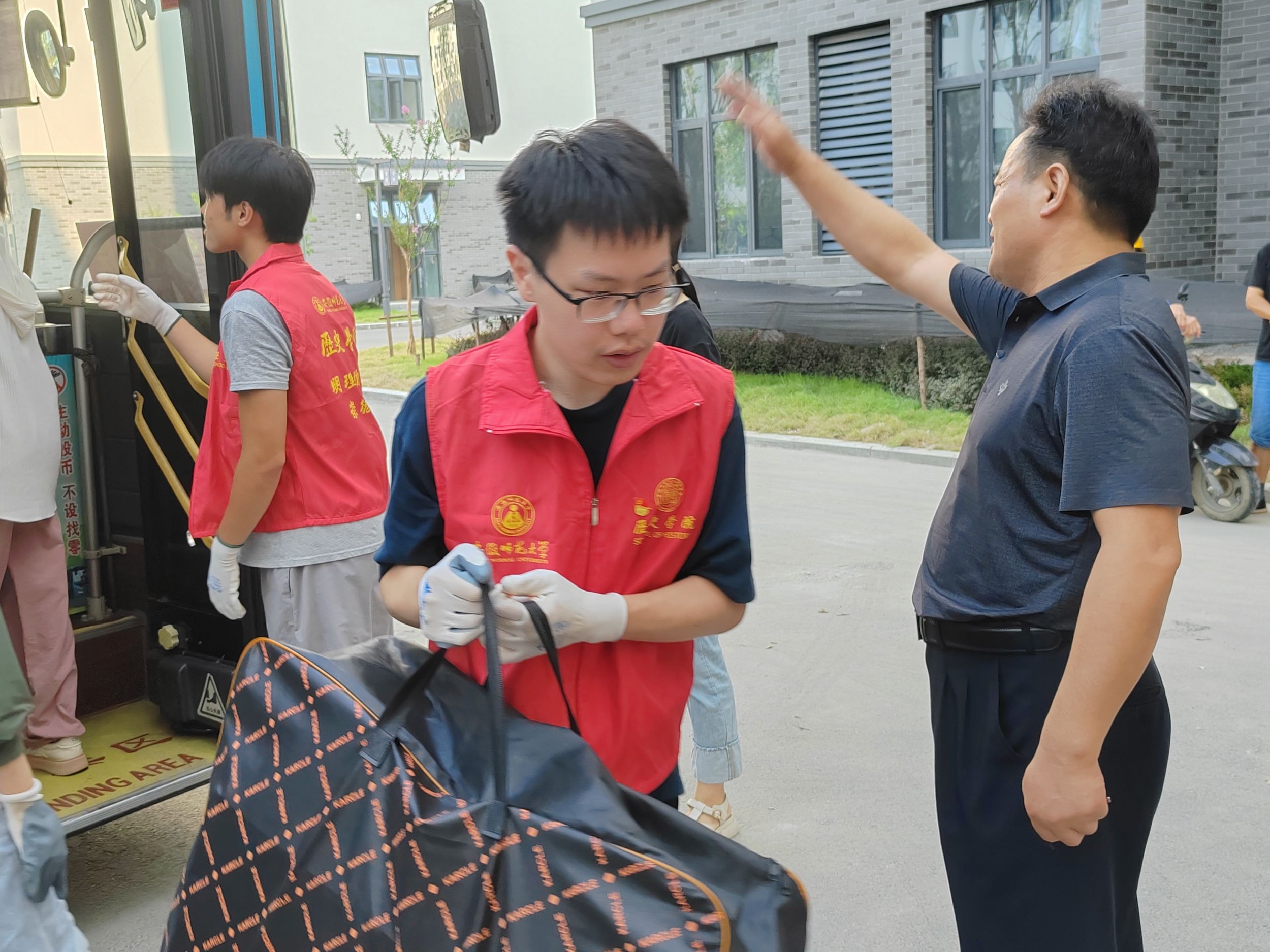 齐心协力,共克时艰。搬迁当天,本科生第一党支部的党员同学吴天耀、吴灿、罗瑞林、陶怡娜、钟欣洁等几位同学早早地来到花津校区冬和园宿舍区,同学们身穿统一的志愿服务服装,胸前佩戴着鲜红的党徽,成为了搬迁现场一道亮丽的风景线。在搬迁现场,党员们分工明确,有的负责搬运沉重的行李箱和家具,有的负责引导同学有序上车下车,还有的则在新宿舍楼内协助同学们整理物品、安顿新居。尽管天气炎热,但党员们的热情丝毫未减,他们汗流浃背却乐此不疲,用实际行动展现了党员的担当与奉献。