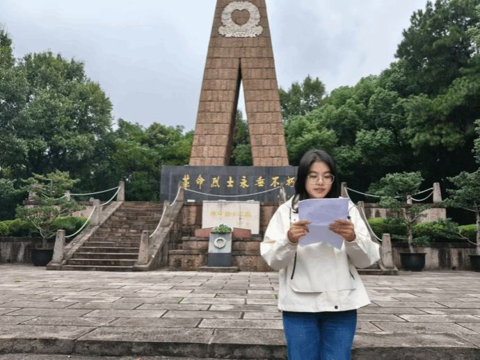 活动第二项,开展抗美援朝精神的专题学习。支部书记吕永鑫开展微党课,他向同学们分析了抗美援朝的背景和伟大意义,深刻解读了抗美援朝精神,为在场同志呈现了一堂内容丰富、情感真挚的主题党课。吕永鑫在总结时引用了习近平总书记的话语:“70年来,我们始终没有忘记在抗美援朝战争中英勇牺牲的烈士们。19万7千多名英雄儿女为了祖国、为了人民、为了和平献出了宝贵生命。烈士们的功绩彪炳千秋,烈士们的英名万古流芳!”随后,2024级党员代表袁辰雪分享了“一级战斗英雄”——李家发70年前的战火青春,她提到:“作为一名青年共产党员,在学习抗美援朝这部分内容时,我更加深刻体会到了爱国主义的重要性,我们要树立民族自信,面对抹黑、否认英雄历史的言论要坚决抵制,肯定老一辈革命家的成就与精神。”最后,2023级党员代表马飞宇带领全体成员,在烈士纪念碑前重温入党誓词,誓词铿锵有力,场面庄严肃穆。