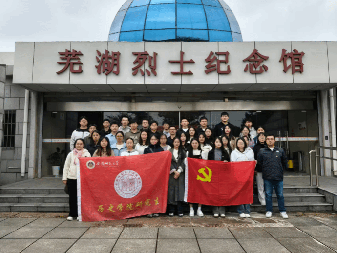 活动第三项,全体同志参观芜湖市烈士纪念馆。2023级中国近代史方向员工何煦冬与吕永鑫在馆内为同学们进行了讲解。他们专业且生动地介绍了近百年中芜湖地区的重要历史人物和重大历史事件。 参观过程中,同学们被馆内丰富的藏品和翔实的图文资料所吸引,这些展品再现了革命先烈的英勇事迹。同学们纷纷在留言簿上写下自己的感悟与敬仰,以此表达对革命先烈的深切缅怀。