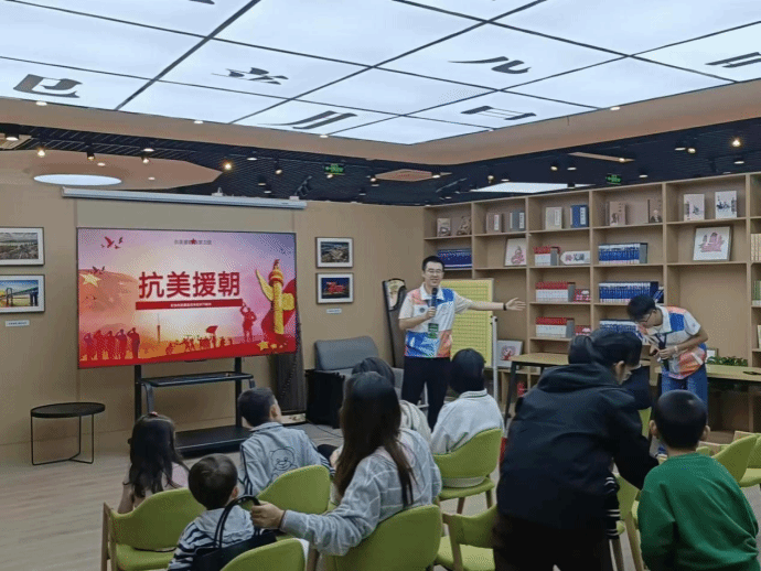 支部依托“简明历史小课堂”志愿服务活动,于10月19日开展抗美援朝专题课堂,旨在以伟大的抗美援朝精神浇灌“祖国花朵”。本次活动由2024级入党积极分子、中国史专业研究生李鹏飞担任主讲。课程伊始,李鹏飞为小朋友们生动描述了抗美援朝的历史背景,激发小朋友们的学习兴趣。而后围绕抗美援朝大事记、胜利原因及深远影响三个方面进行了深入的剖析。在授课过程中,李鹏飞运用了大量的图片资料,带领小朋友们重回历史现场,让小朋友们深刻认识到了革命先烈的崇高品德和现在美好生活的来之不易。