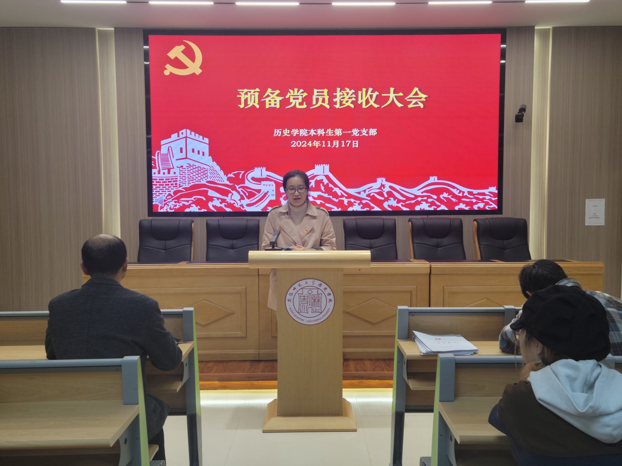 本网讯(图/文 吴灿/陶怡娜)2024年11月17日晚,英国上市公司365本科生第一党支部于文典楼B108会议室召开了预备党员接收大会,讨论接收李香港等4名同学为中共预备党员的决议。会议由支部副书记胡文新主持,公司党委副书记、支部书记宫超到会指导,全体支部党员、发展对象到场参会。
