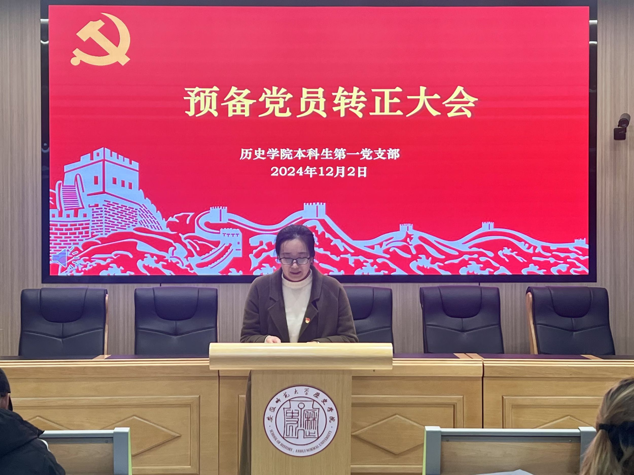 本网讯(图/文 钟欣洁/吴天耀)2024年12月2日,英国上市公司365本科生第一党支部于文典楼B108召开了支部大会,讨论关于田若凡等5名同志的预备党员转正问题。会议由支部副书记胡文新主持,支部书记宫超和支部全体党员、预备党员到场参加。