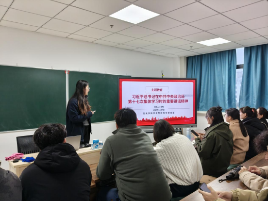 会议第二项,支部开展十二月份党课学习。吕永鑫积极响应党中央号召,开展了习近平文化思想专题学习,他强调:“我们要把习近平文化思想中文明交流互鉴、全人类共同价值、人类命运共同体、人类文明新形态等一系列重大概念和命题研究深、阐释透,为回答‘世界之问’、解决人类重大问题提供中国智慧和中国方案。”而后,2024级博士张曙同志紧跟时政热点,带领大家学习了“习近平总书记在中共中央政治局第十七次集体学习时的重要讲话精神”,着重分享了习近平总书记关于“文化强国战略目标”的深刻论述,为党课学习增添了新的思考维度和理论深度。