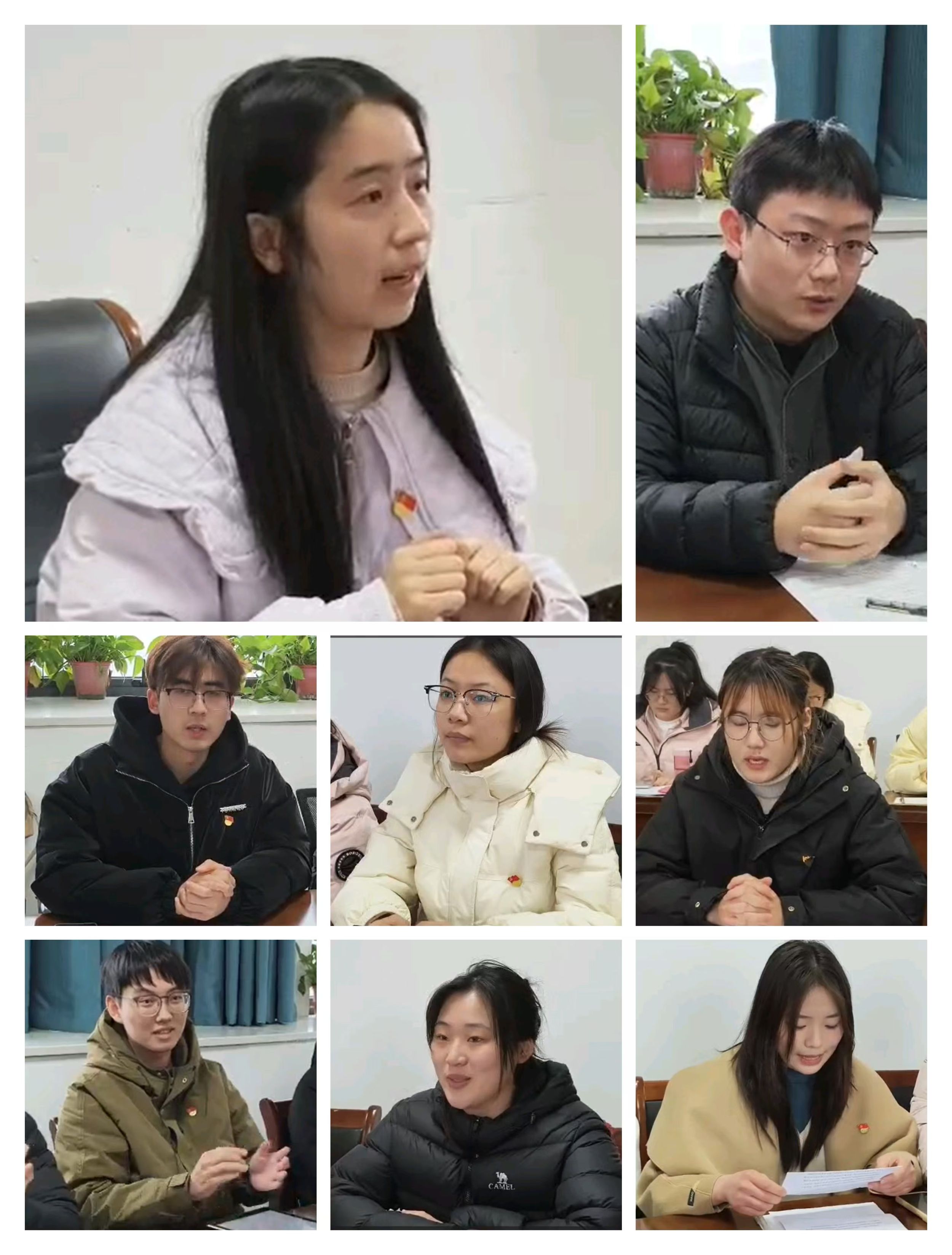 随后,全体员工党员围绕寒假期间的调研、考察、实践和志愿服务经历分享了感悟和思考。任启航同志讲述了自己在教育机构实习实践的经历,深刻探讨了当今社会AI技术和人工智能的发展对教育行业及文科专业的多重影响;王慧同志在寒假期间瞻仰了位于芜湖市赭山公园的戴安澜烈士墓,深刻感受到抗日英烈的崇高理想信念,在思想政治上接受了一次精神洗礼;刘一丹同志分享了自己参加的社区关爱孤寡老人志愿活动,她说志愿服务是一场温暖且有意义的旅程,通过帮助他人自己收获了感动和成长,未来也将以实际行动践行全心全意为人民服务的宗旨;王田弘烨同志于寒假期间深入采访了淮南市九龙岗老铁路工人和纺织厂退休工人,探索了淮南城市历史发展轨迹,深刻体会到“路矿精神”的内涵。其他同志也纷纷发言,讲述寒假期间的所思所想所得。